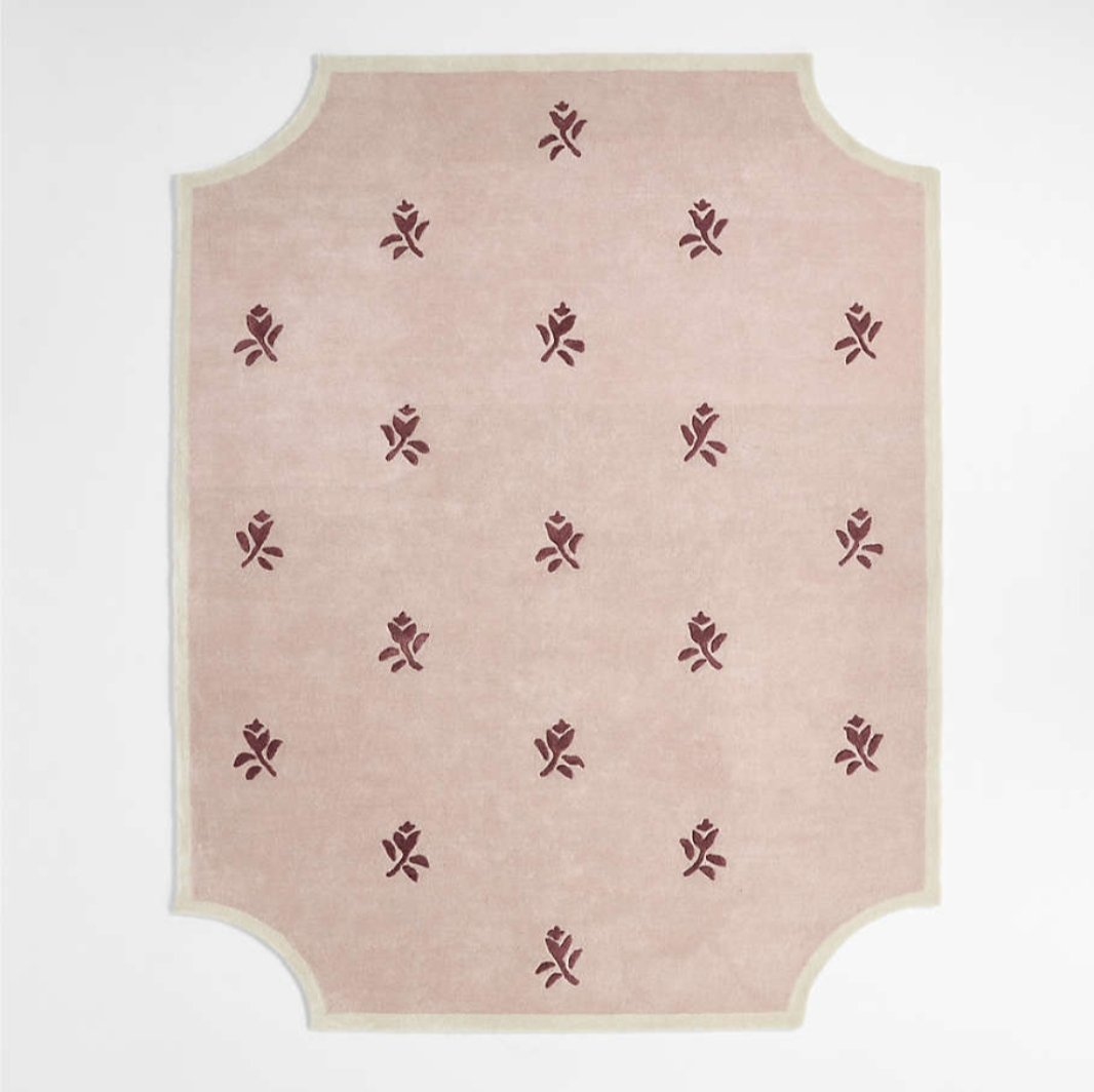 The Blossom Haven Rug is designed to bring warmth, softness, and a touch of whimsy into your nursery. Featuring a gentle blush-pink base with playful burgundy motifs, it creates a cozy and elegant foundation for your little one’s space. Perfect for nurseries or children’s rooms, it adds charm while ensuring comfort underfoot.