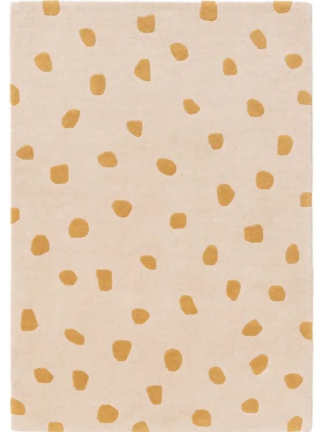 Brighten your interiors with the Golden Glow Dot Rug, featuring a cream base adorned with mustard-hued polka dots. This rug brings warmth and a cheerful character to your space, perfect for kids’ rooms, creative studios, or cozy reading corners.