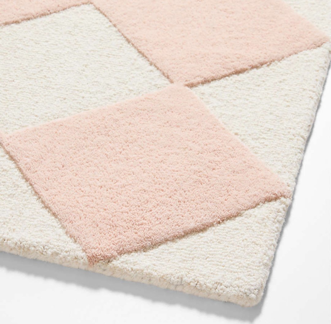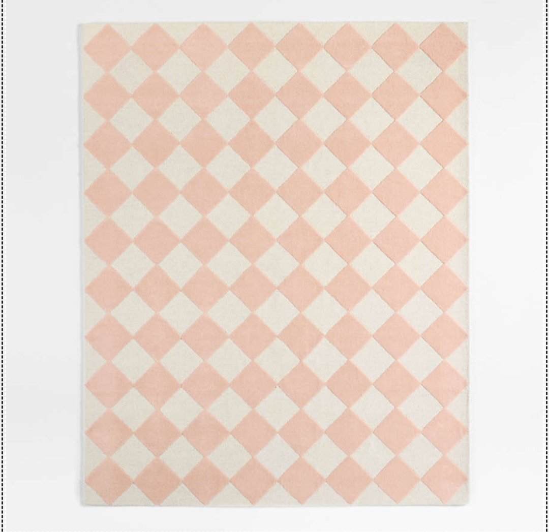 The Peach Glow Checkmate Rug is a warm reinterpretation of the classic diamond pattern. With its peach-pink and ivory tones, it brings a cheerful and cozy aesthetic to your home. Ideal for light-toned interiors, nurseries, or spaces that need a touch of playful elegance.