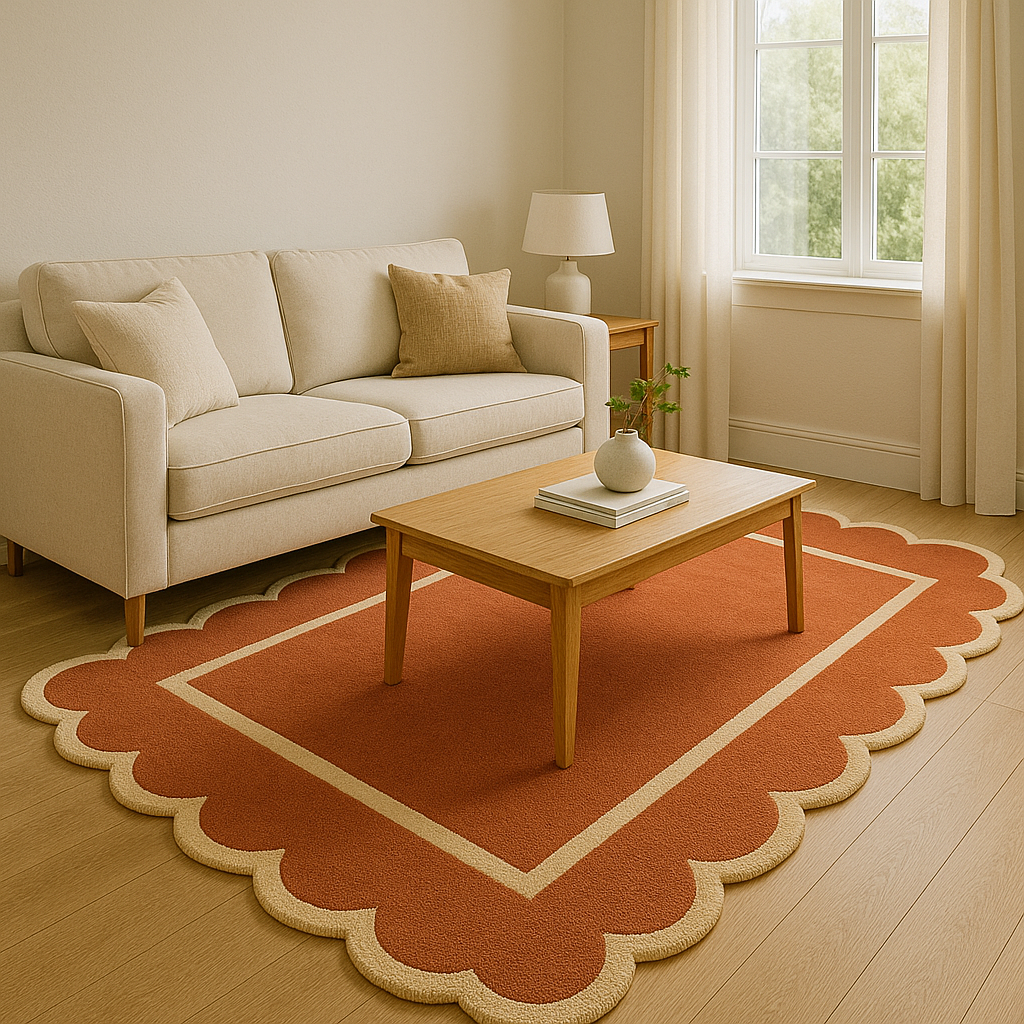 Border rugs are available in various materials such as wool, cotton, jute, and synthetic fibers. Many are hand-woven or machine-made depending on the style and price range. Because of their structured design, border rugs are commonly placed in living rooms, dining areas, hallways, bedrooms, and office spaces where they help anchor furniture and define spaces within a room.
