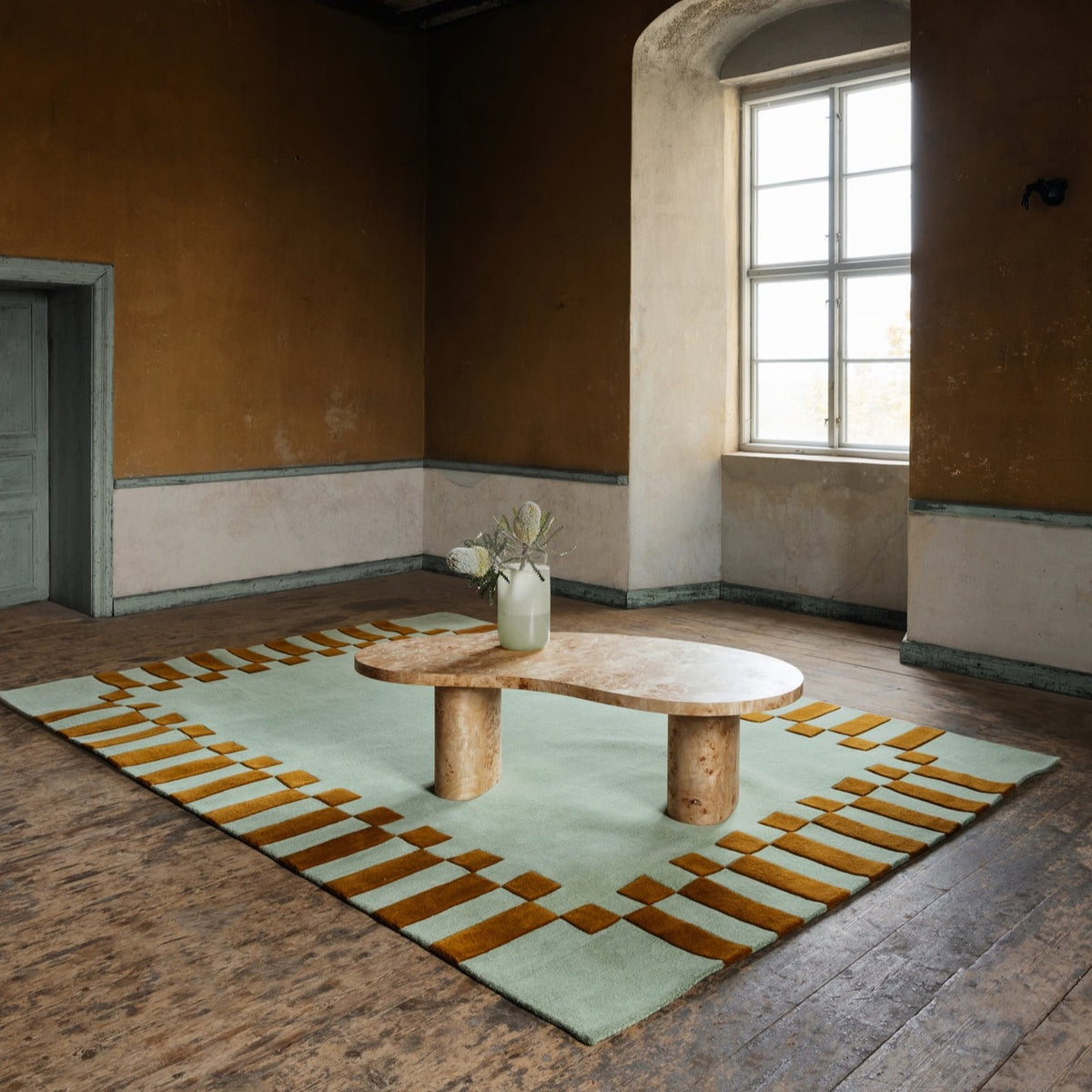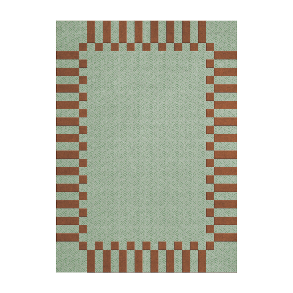 Border rugs are available in various materials such as wool, cotton, jute, and synthetic fibers. Many are hand-woven or machine-made depending on the style and price range. Because of their structured design, border rugs are commonly placed in living rooms, dining areas, hallways, bedrooms, and office spaces where they help anchor furniture and define spaces within a room.