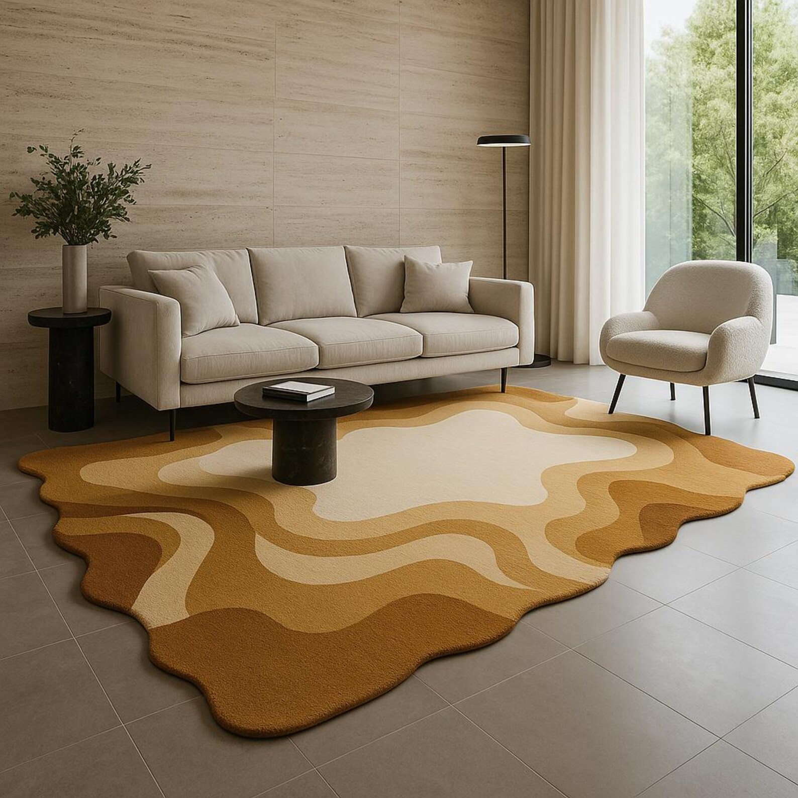 The rug is hand-finished with a sturdy canvas backing, ensuring it maintains its shape and provides a comfortable, cushioned feel underfoot. Its monochromatic design makes it an ideal choice for those who want to add visual interest without the distraction of bold patterns. Whether placed in a cozy bedroom or a minimalist living room, this rug adds a layer of quiet luxury and architectural dimension that grounds the room in effortless style.