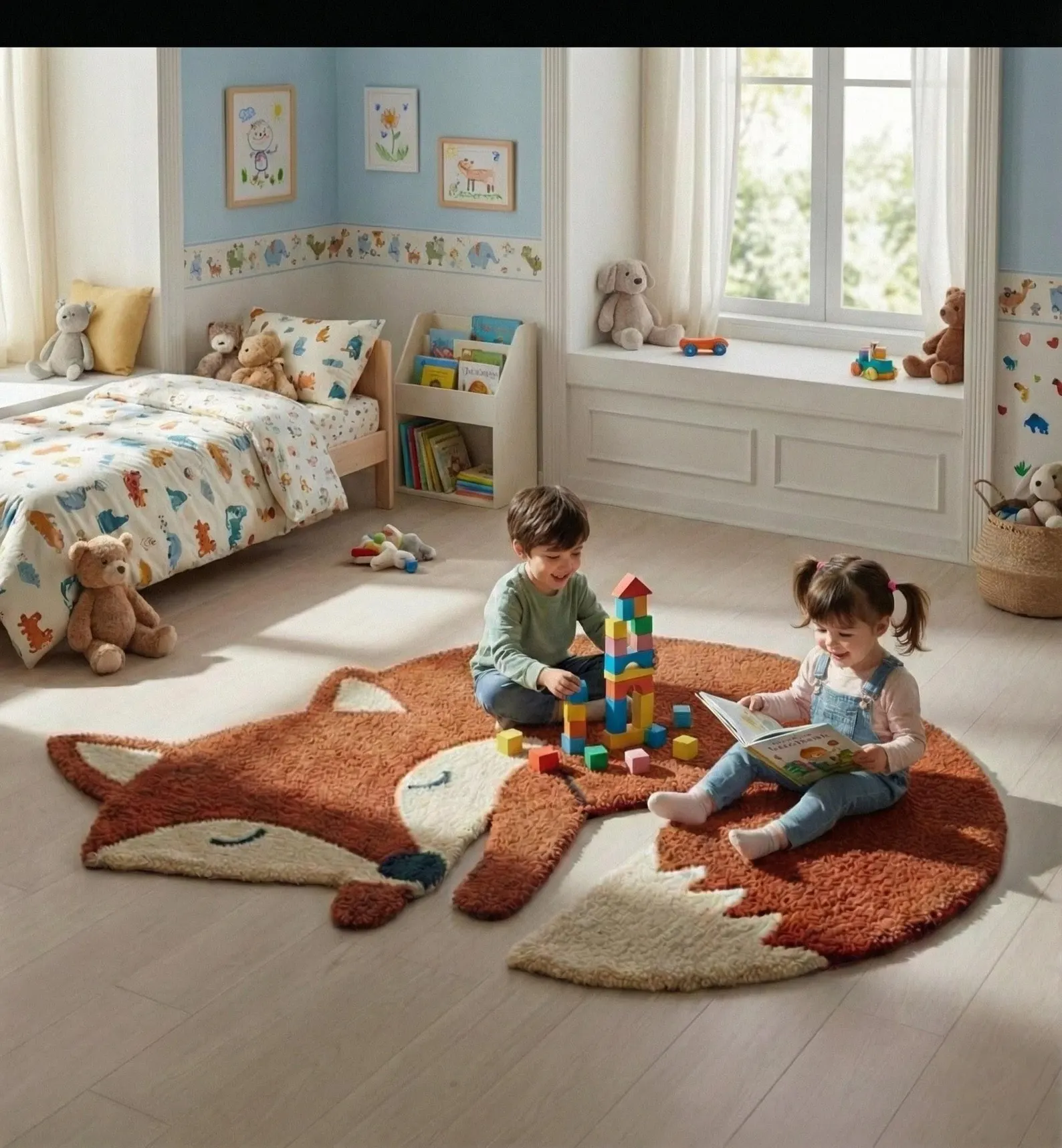 Hand-Tufted Wool Fox Rug, Kids Playroom Accent Rug