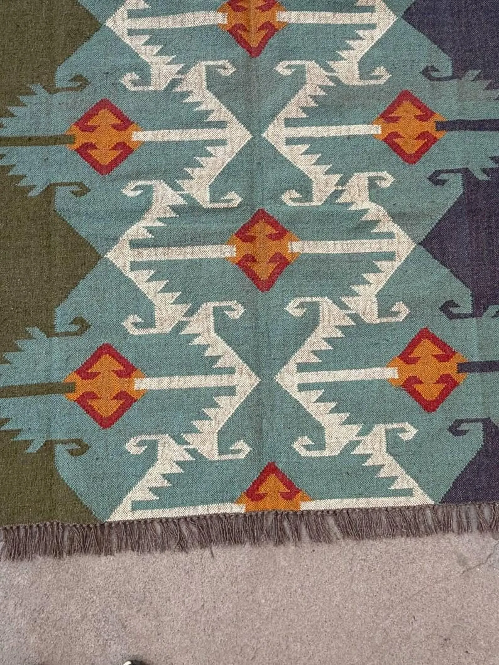 Elevate your home with our Multi-Size Runner Rug for Stairs, a handwoven geometric Indian kilim that brings both style and functionality to your spaces. This versatile runner rug is perfect for enhancing the beauty of your entryway, hallway, kitchen, or bedside area.