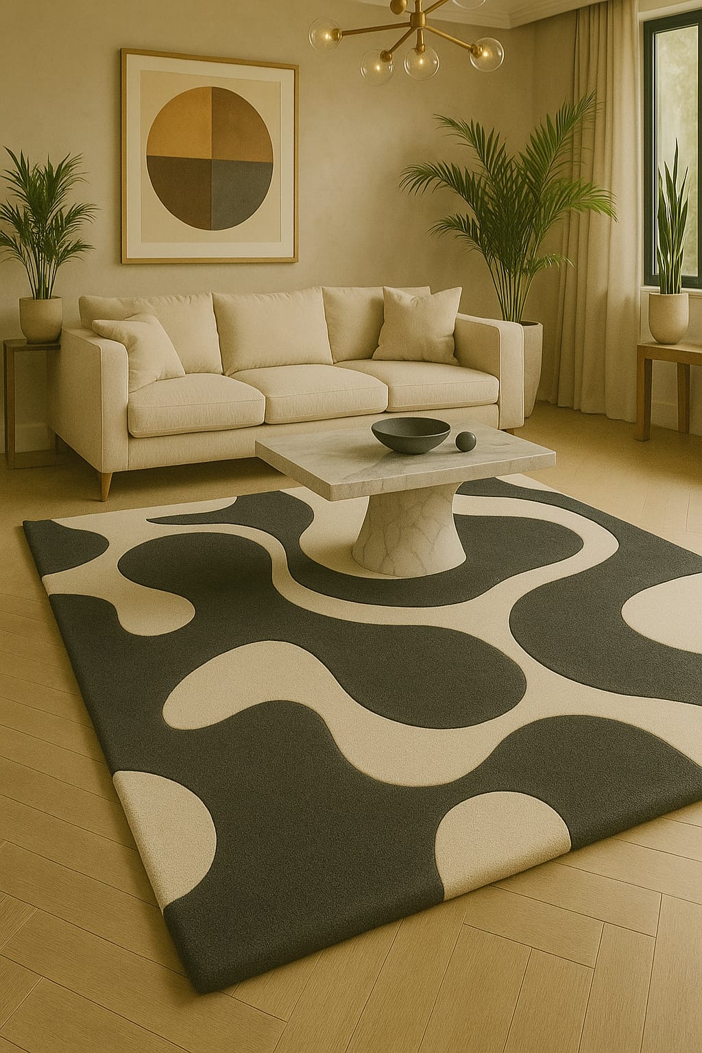 The Sunset Waves Rug is more than just a floor covering—it’s a statement piece that transforms any room into a modern haven filled with character and charm.